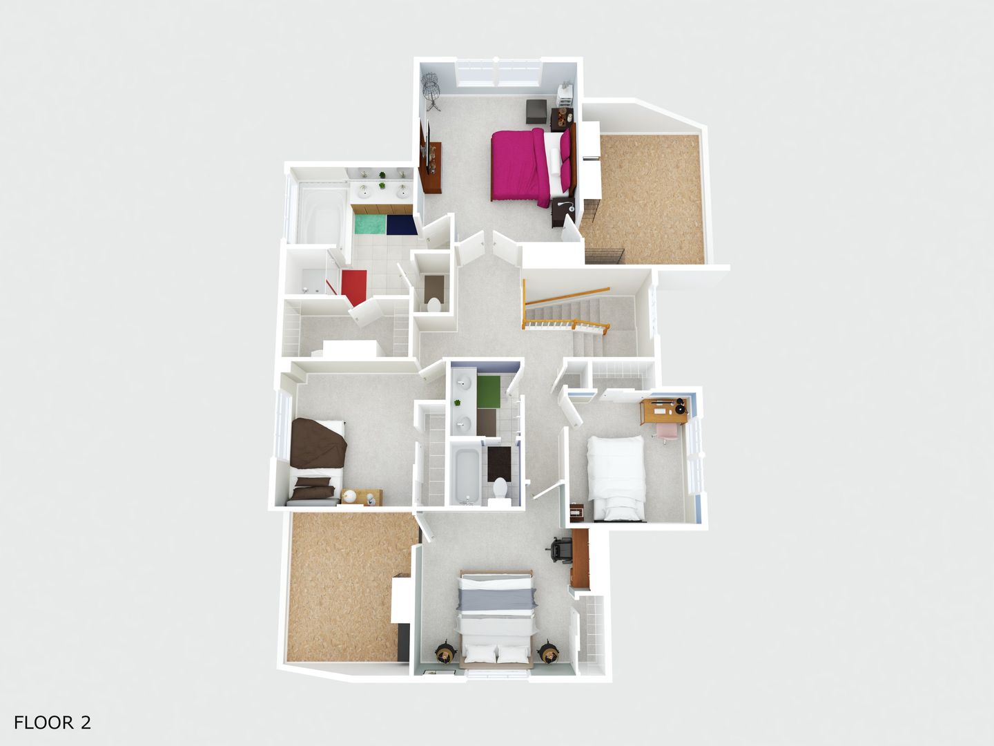 Three additional bedrooms are located upstairs, along with the second full bathroom featuring a double-vanity sink, tub, and shower.