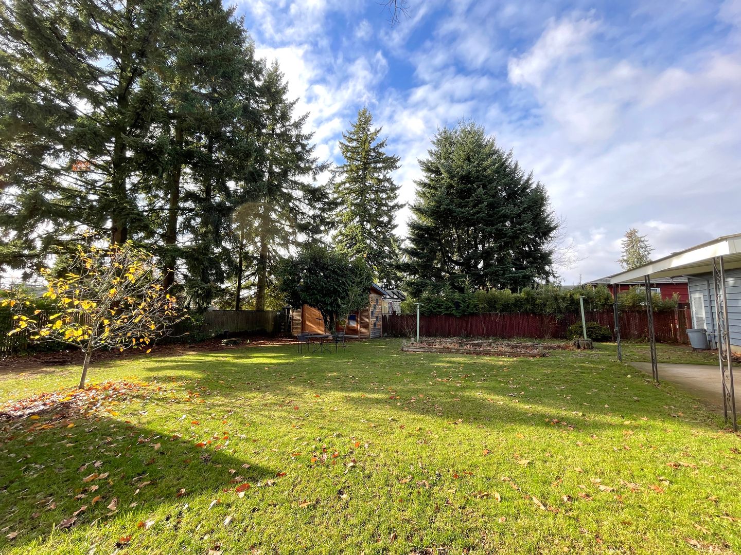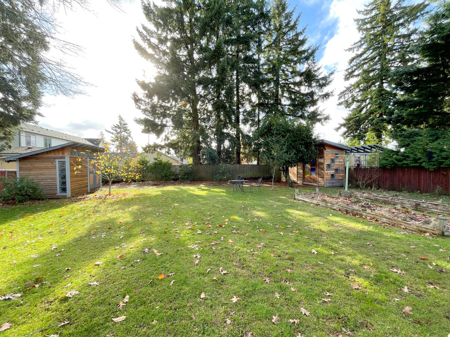 Spacious, fully-fenced yard! Lots of room to exercise your green thumb, with garden beds (4'x16' and 4'x20' raised beds) available for tenants' use, and a small shed for your gardening tools! In the warmer seasons, enjoy the roses, azaleas, rhododendrons and peonies, as well as rhubarb, blueberries, raspberries, and apple trees – all planted on the property!