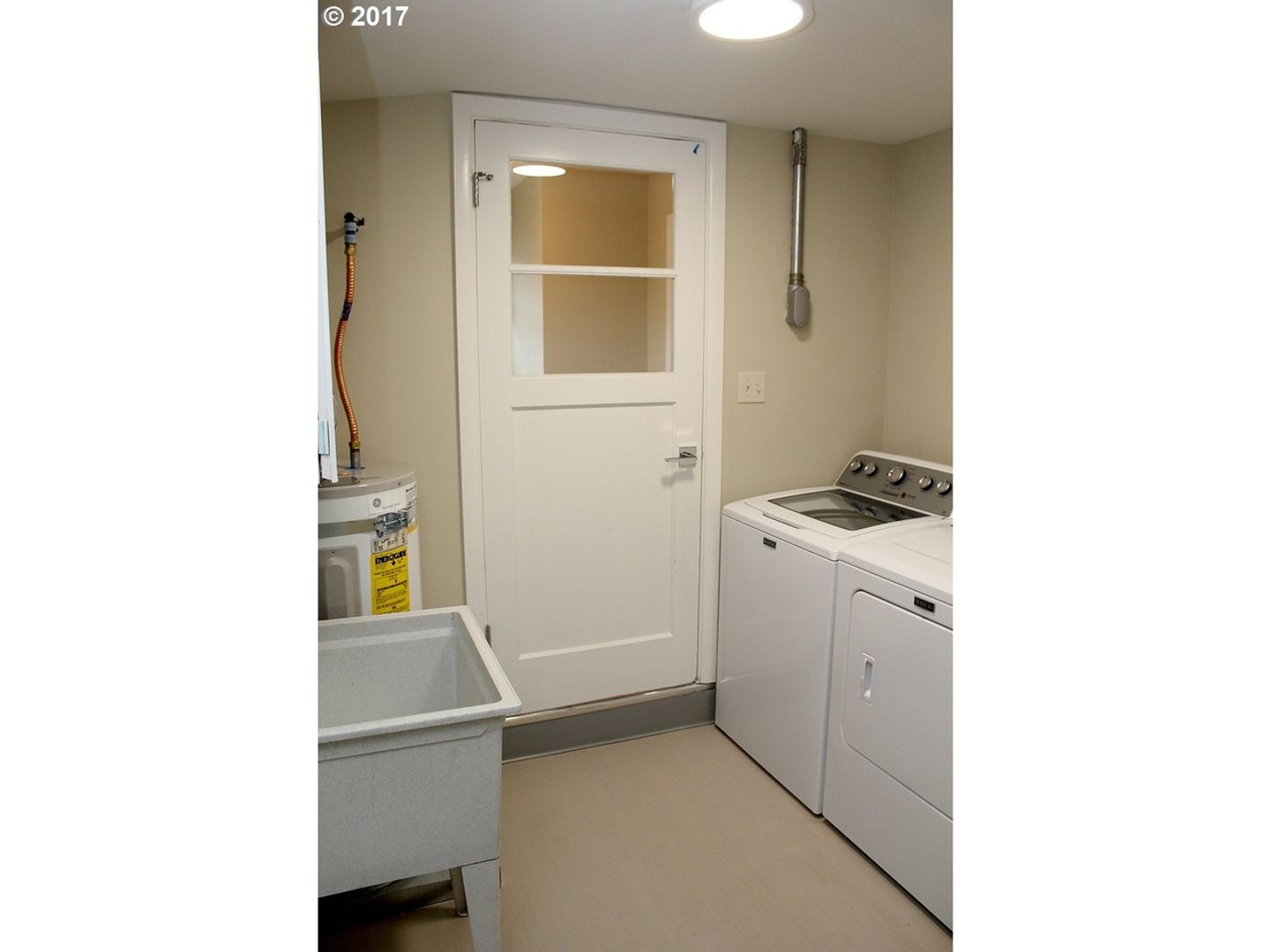 Laundry room with washer and dryer included, with utility sink.