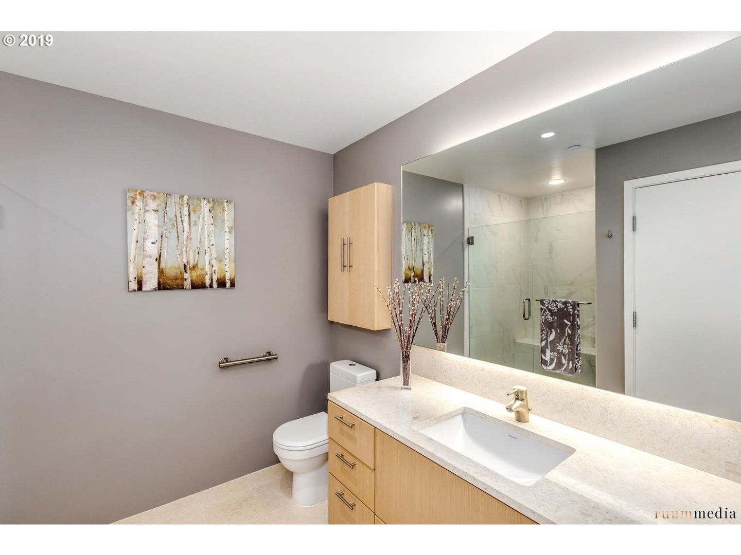 Enter into a spacious open concept floor plan. Light drenched floor-to-ceiling windows provide unobstructed views of surrounding mountains and downtown Portland.