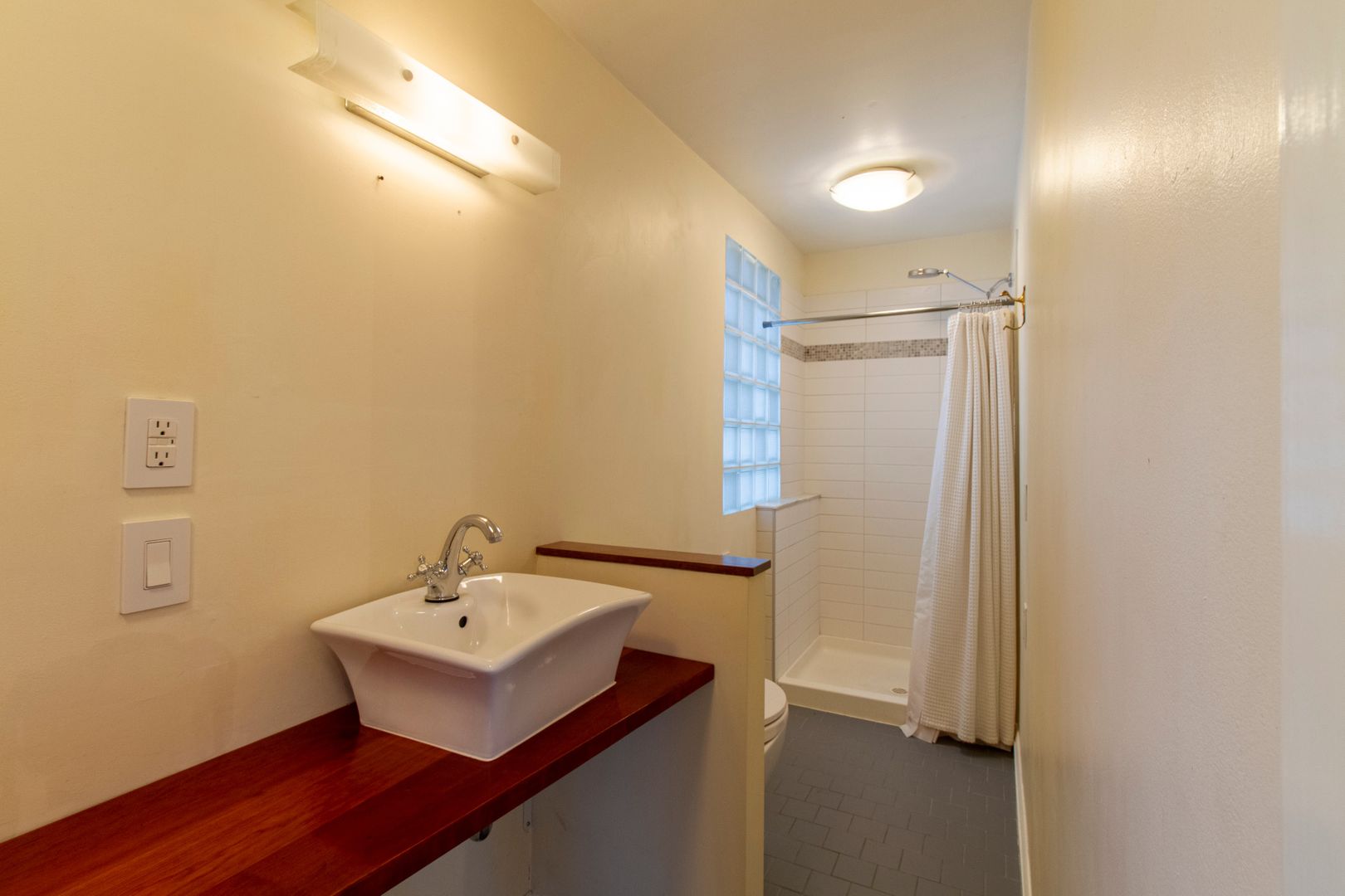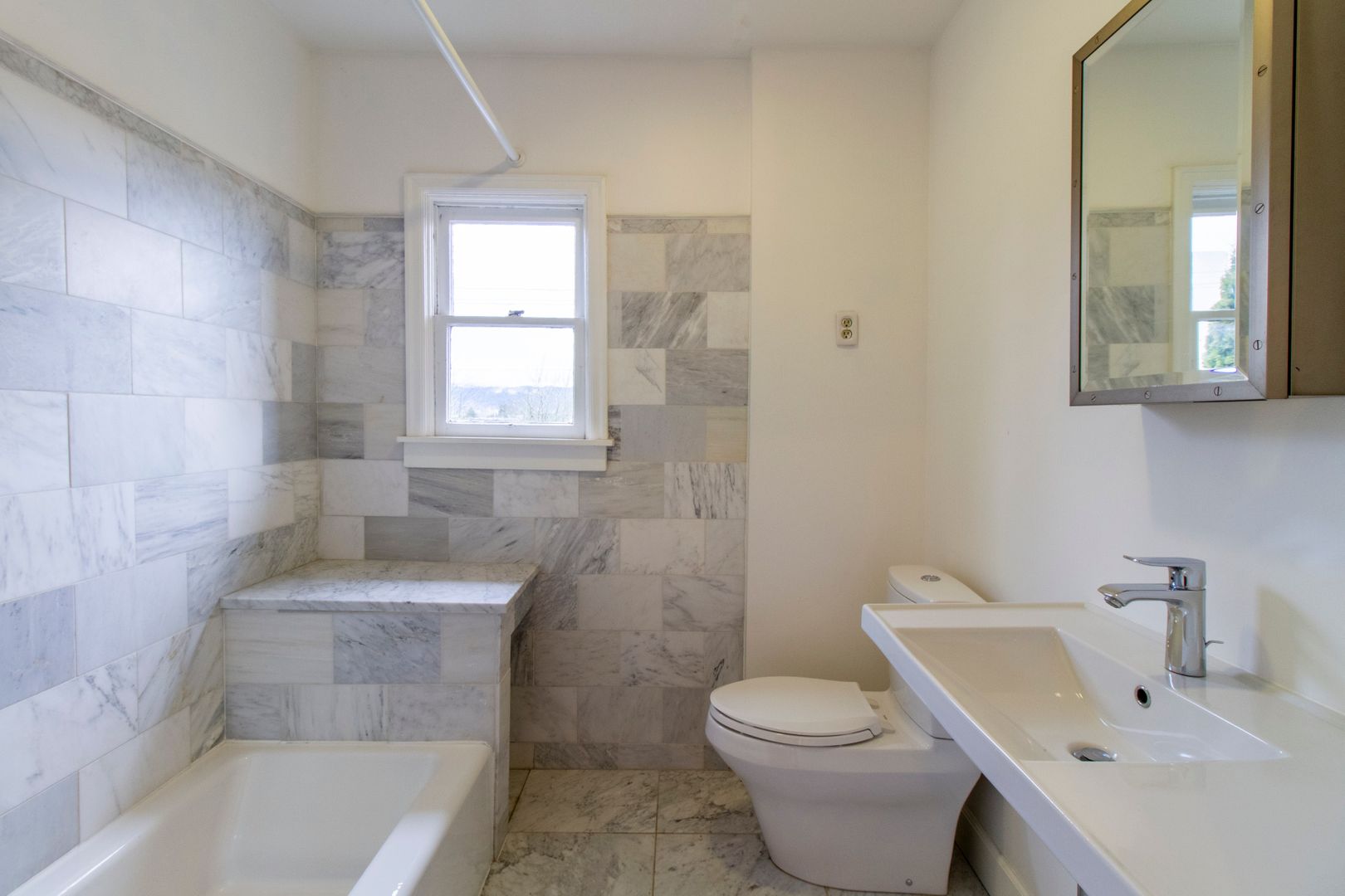 Upstairs has the three larger bedrooms and has another completely remodeled bathroom off the hallway. Bathroom boasts gorgeous white and grey tiling with modern finishes, whereas bedrooms have the hardwood floors and old Portland charm.