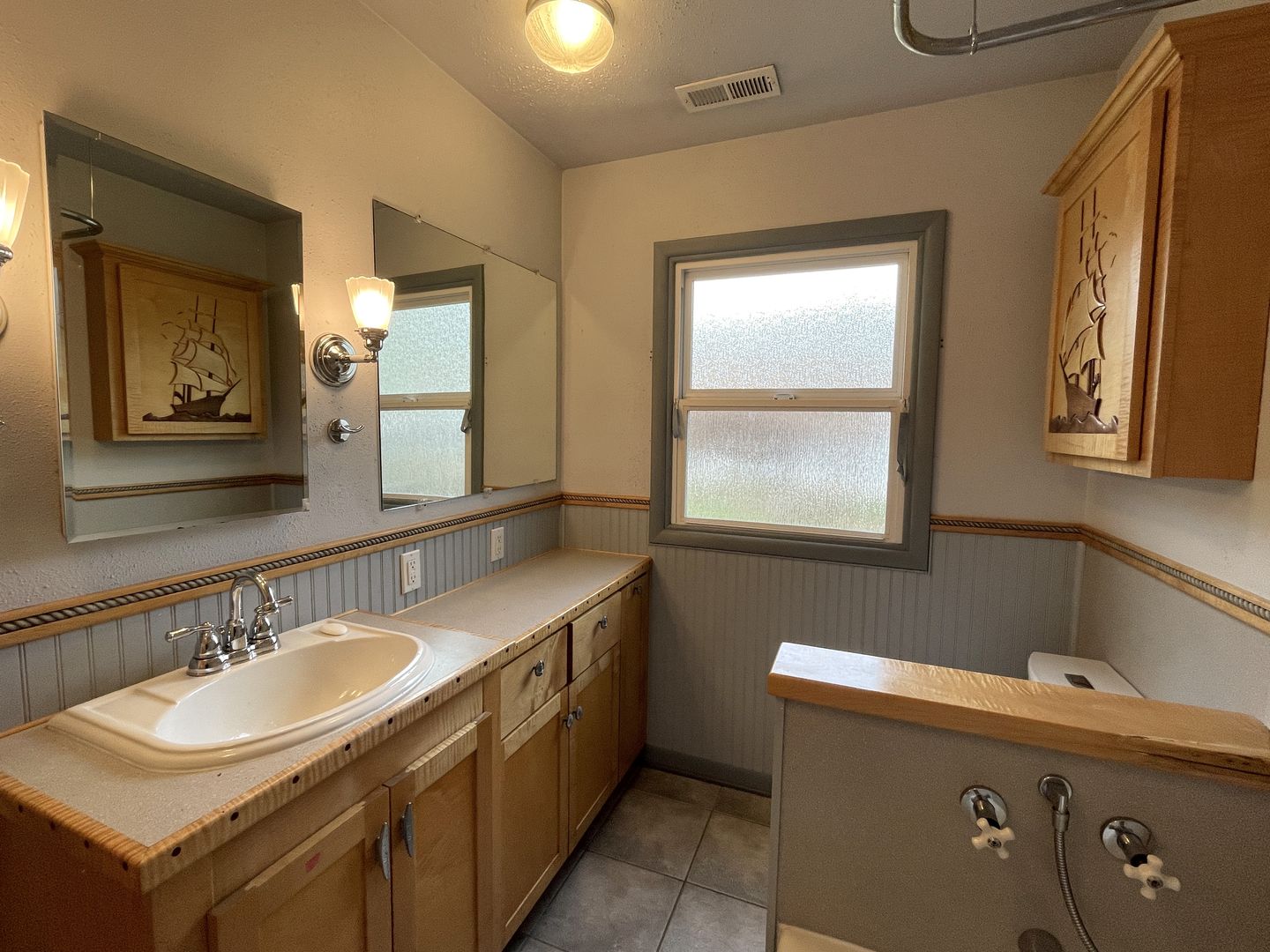 The full bathroom has a tub/shower and ample vanity storage. Laundry closet off the hallway, with stackable washer/dryer included. Bonus built ins off the hallway as well.
